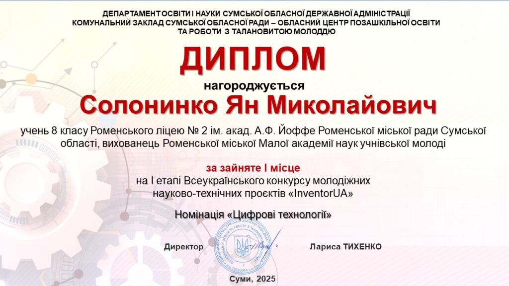 Від ідеї до перемоги: юні інноватори Роменської МАН cеред переможців обласного етапу «InventorUA»