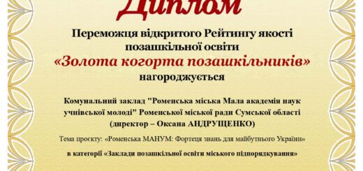 0 Роменська МАНУМ — у «Золотій когорті позашкільників» 2025 Відділ освіти / Заклади позашкільної освіти / МАН / Новини 20 Січ, 2026 Комунальний заклад...